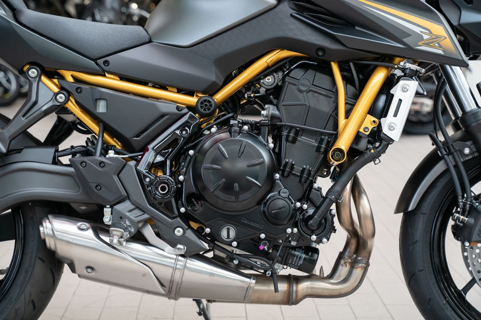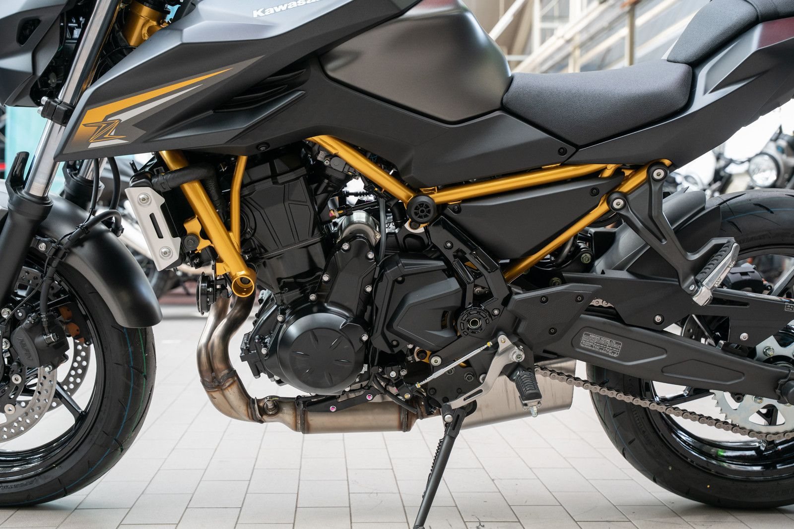 Die Kawasaki Z650S präsentiert sich als kraftvolles Naked Bike der Mittelklasse, das optisch stark an die größeren Z-Modelle wie die Kawasaki Z900 angelehnt ist.