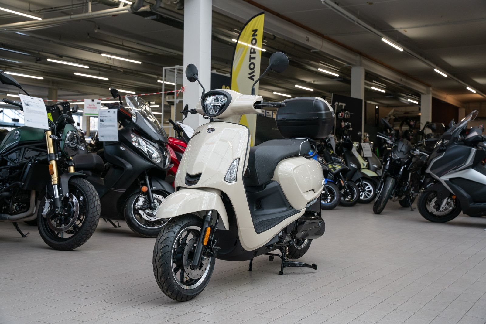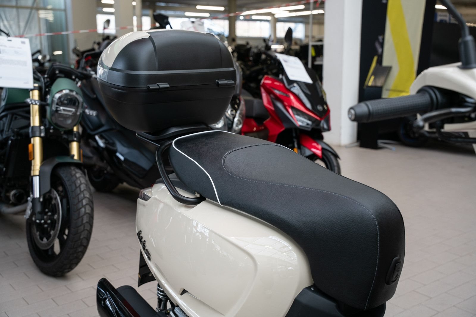 - Vollausstattung Serienmäßig: Das farblich passende Topcase ist bereits montiert und im Preis enthalten. Genug Platz für Helm und Einkauf!
