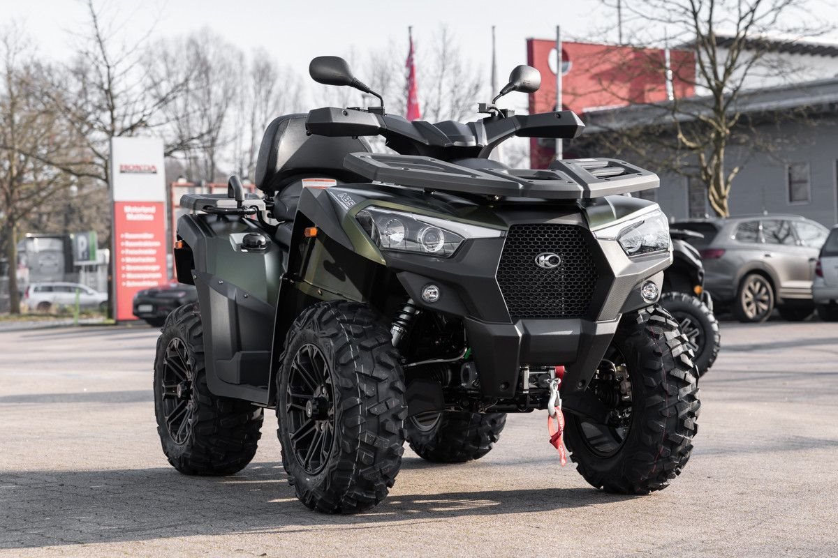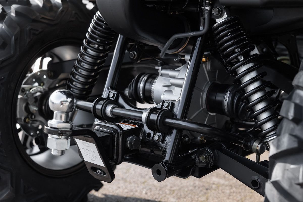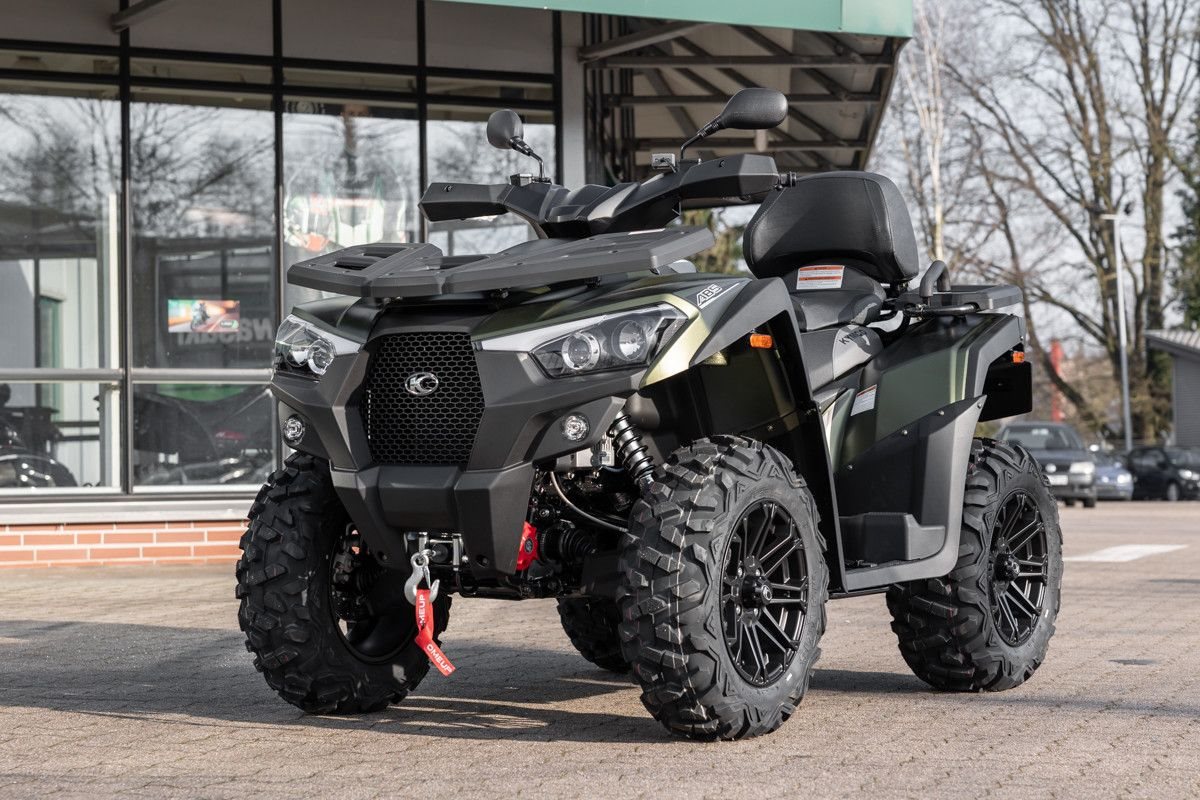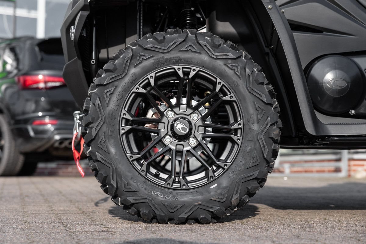 Zur Vollausstattung gehören zum Beispiel eine elektronische Lenkunterstützung, die geschwindigkeitsabhängig reagiert, eine kräftige Seilwinde, stufenlose Variomatik, zuschaltbarer Allradantrieb und Differenzialsperre vorne, Untersetzungsgetriebe, Bergabfahrhilfe, Anhängerkupplung, zentrales LCD-Cockpit und sportliche Doppelspeichen-Felgen mit Maxxis Bighorn Reifen.