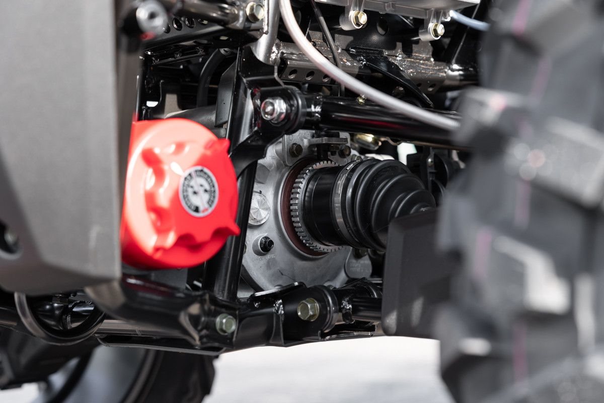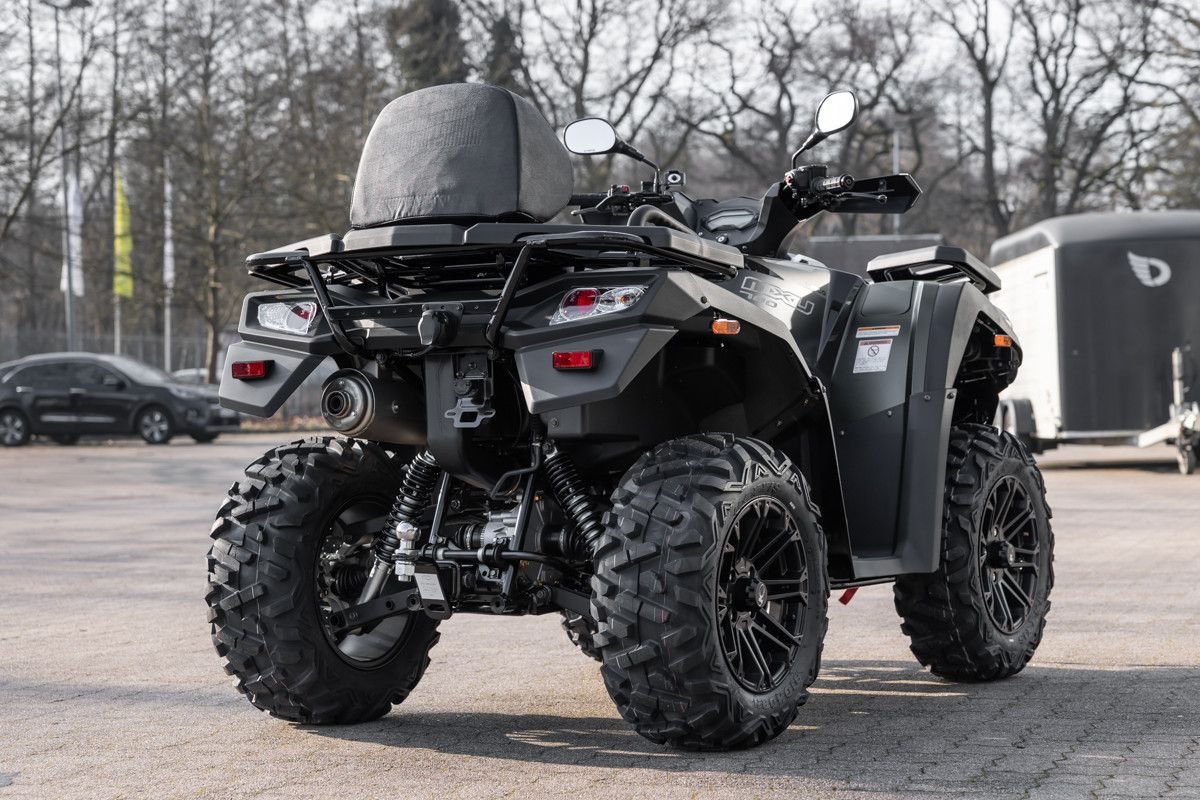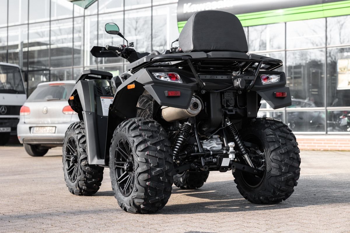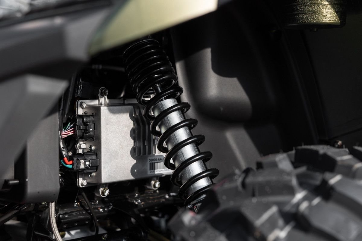 Zur Vollausstattung gehören zum Beispiel eine elektronische Lenkunterstützung, die geschwindigkeitsabhängig reagiert, eine kräftige Seilwinde, stufenlose Variomatik, zuschaltbarer Allradantrieb und Differenzialsperre vorne, Untersetzungsgetriebe, Bergabfahrhilfe, Anhängerkupplung, zentrales LCD-Cockpit und sportliche Doppelspeichen-Felgen mit Maxxis Bighorn Reifen.